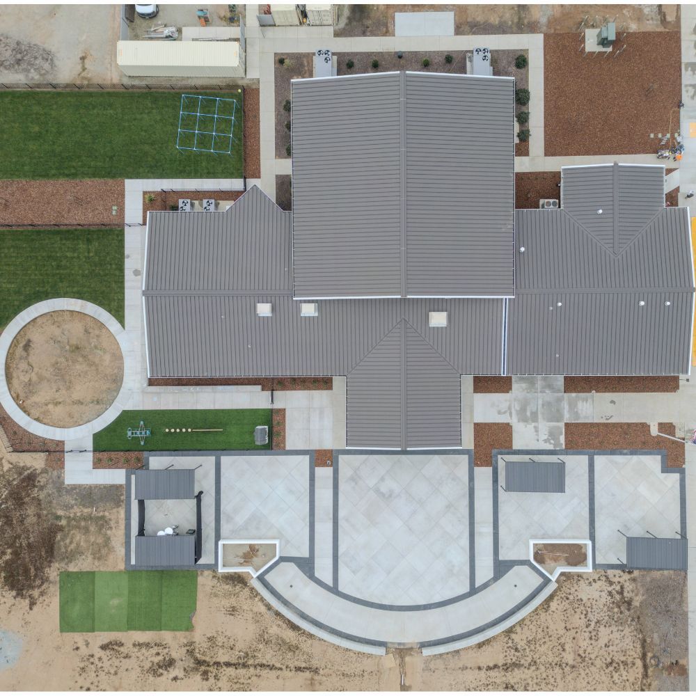 Loma Vista Community Church Addition – Clovis, CA Clovis, CA Proposed classrooms, lounge, break room and copy room addition to the north side of existing sanctuary also new outdoor plaza and existing fenced children play area to be modified and add 3 foot wide gate on east side of existing building Start: 2025 Area: 3,100…